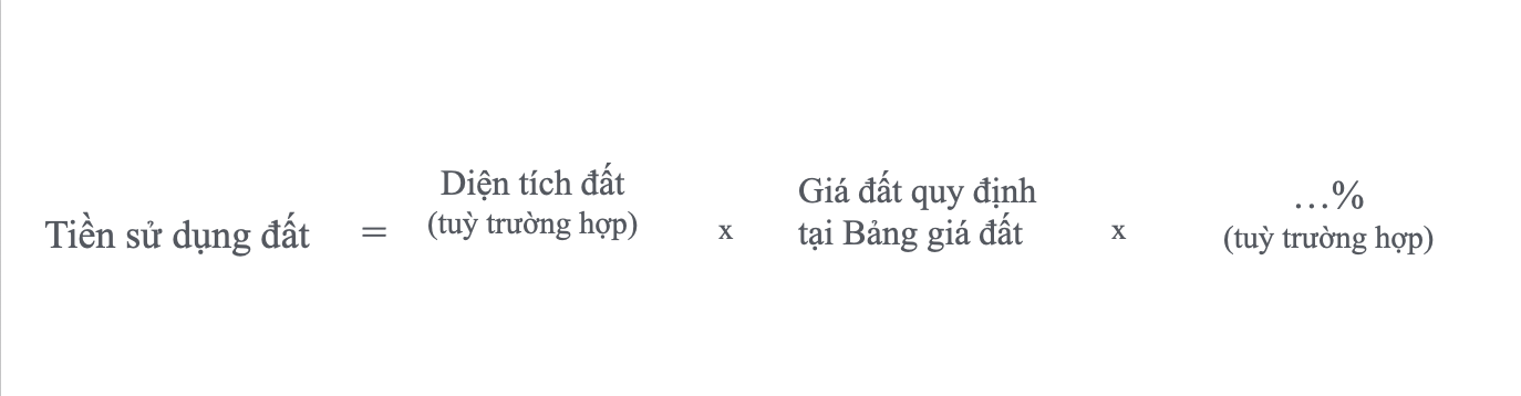 Theo Nghị định 103/2024/NĐ-CP Quy định về tiền sử dụng đất, tiền thuê đất thì Công thức tính tiền sử dụng đất được tóm tắt chung như sau: