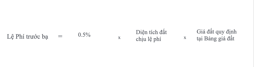 Theo Nghị định 10/2022/NĐ-CP Quy định về Lệ phí trước bạ thì công thức tính lệ phí trước bạ đối với đất được tóm tắt chung như sau: