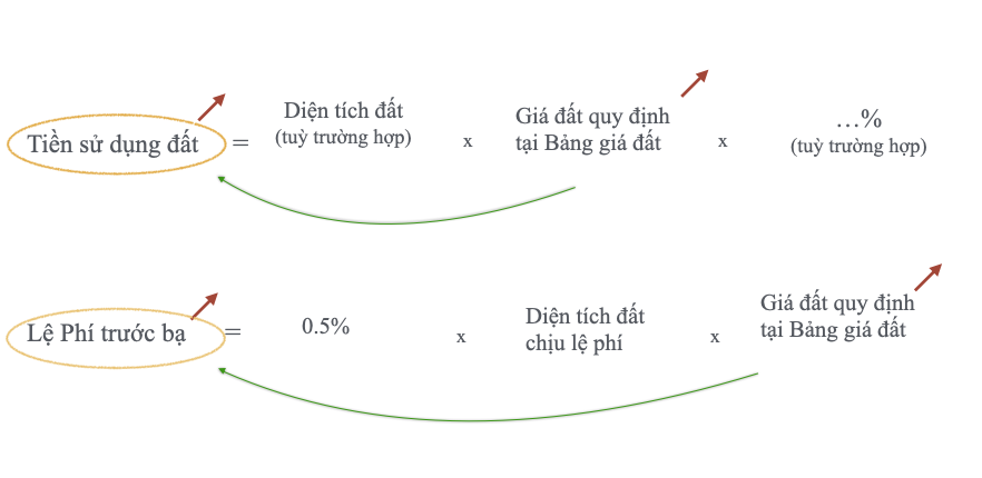 2. Công thức tính tiền sử dụng đất và lệ phí trước bạ
